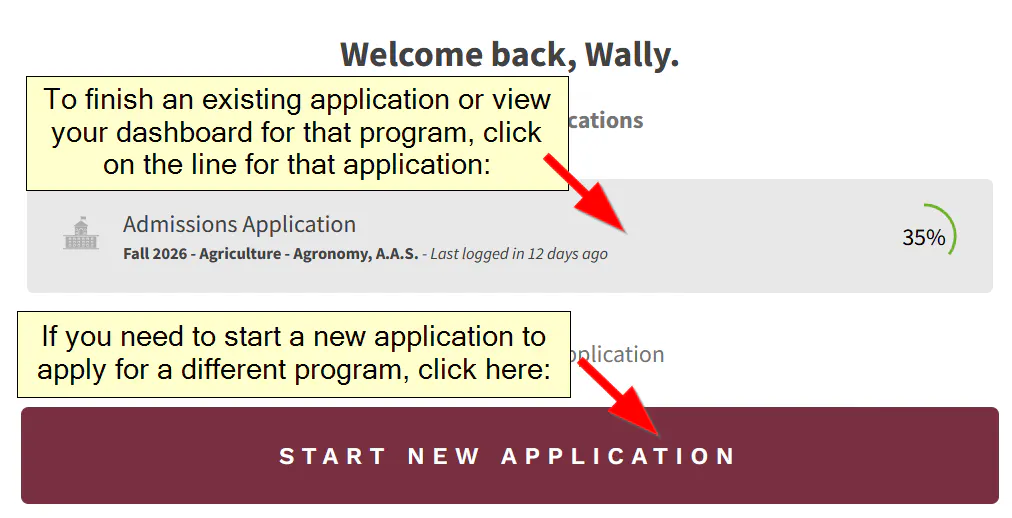 Once you're logged in, click into your existing applications in the list to access your application dashboard. Each dashboard will show you any supplemental items you might need to submit, the current status of your application, and any orientation information that the Admissions team has sent your way!